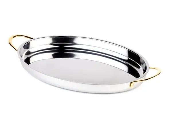 מגש הגשה נירוסטה אוולי 31X21.5 ס"מ ידיות זהב