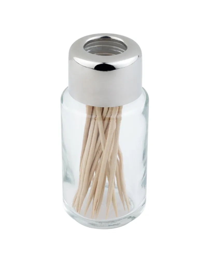 מחזיק לקיסמי שיניים דגם "קלאסיק" מיכל זכוכית עם טבעת נירוסטה 40313