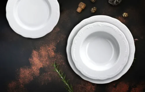 צלחת מרק/סלט פורצלן לבן עם עיטור תוצרת איטליה דגם PRAGA